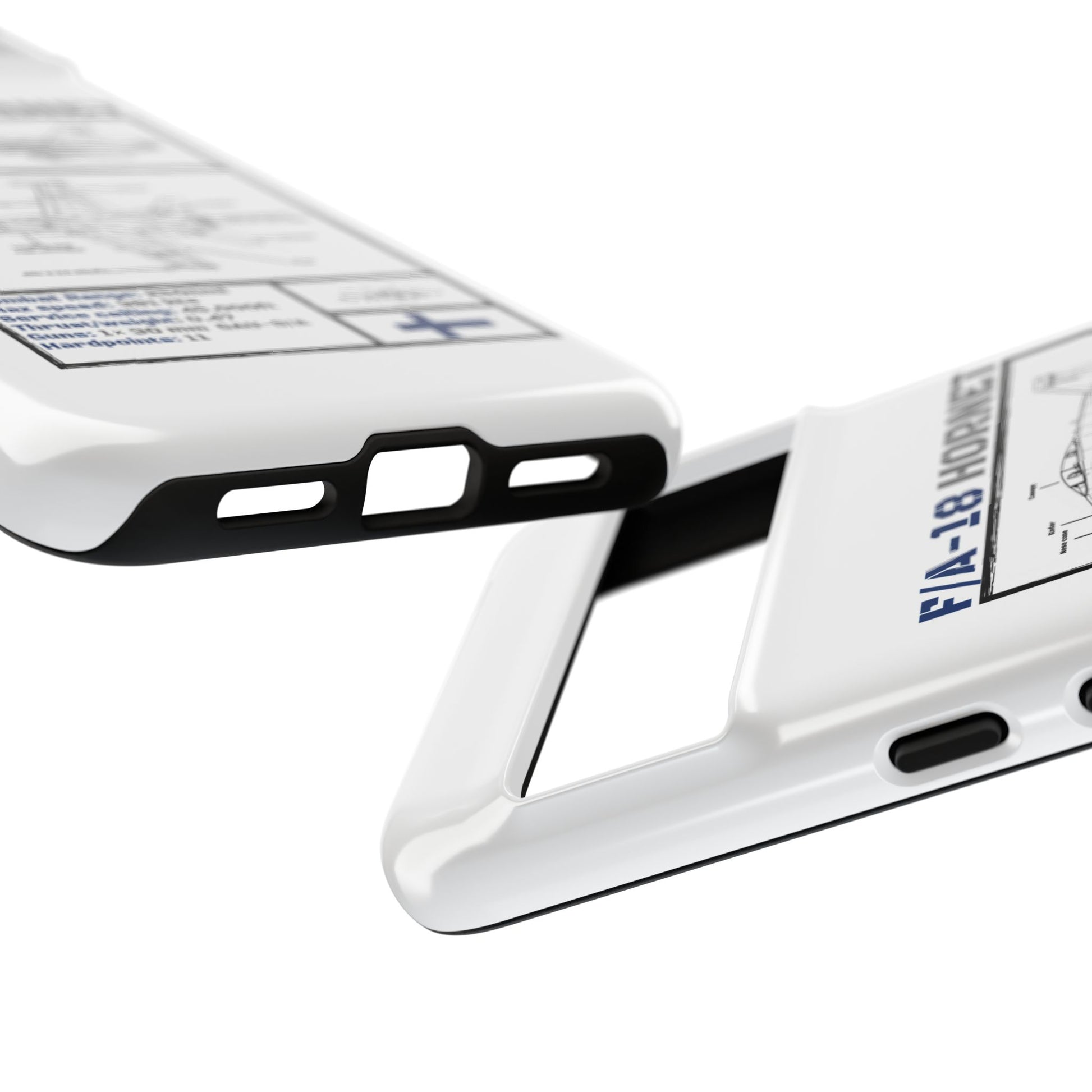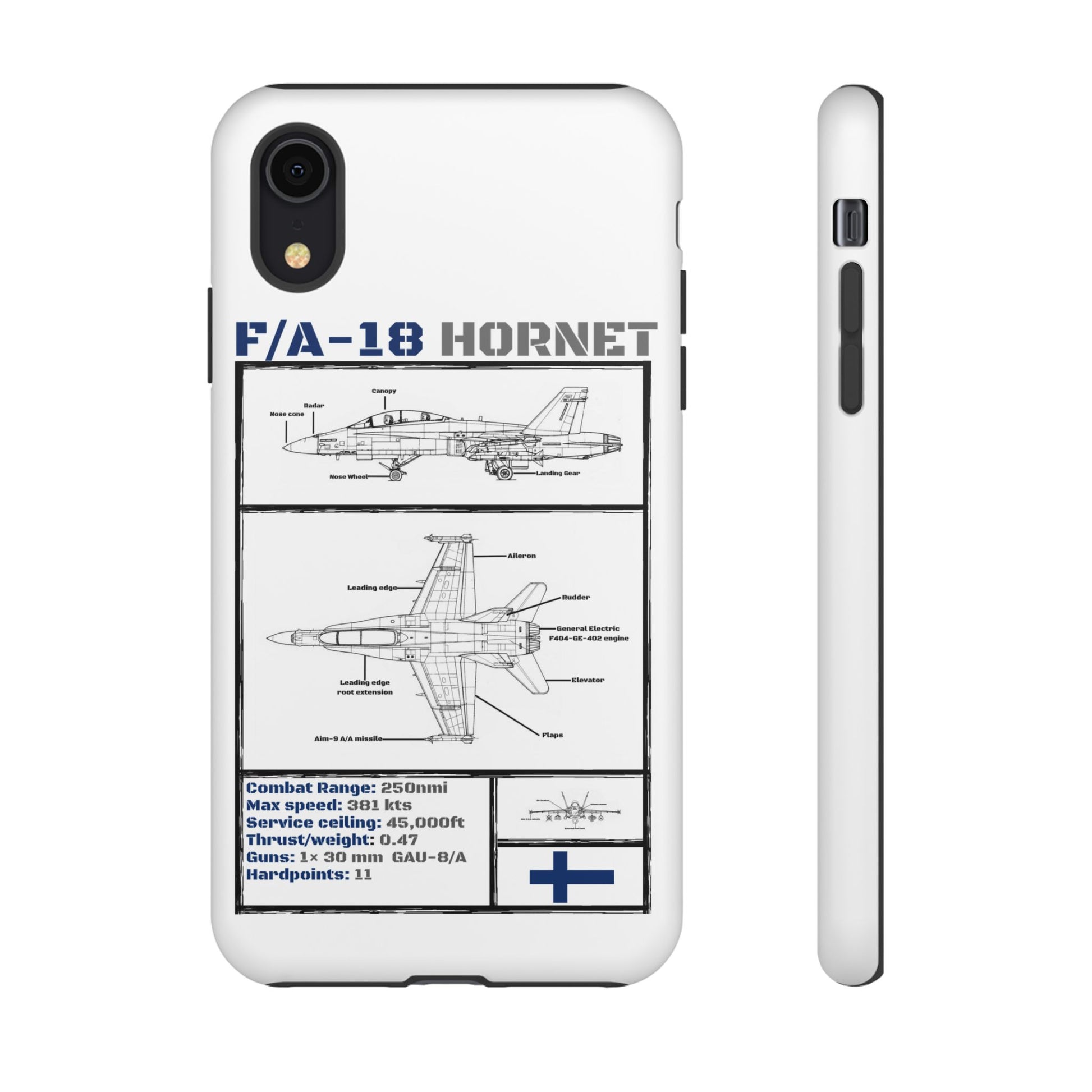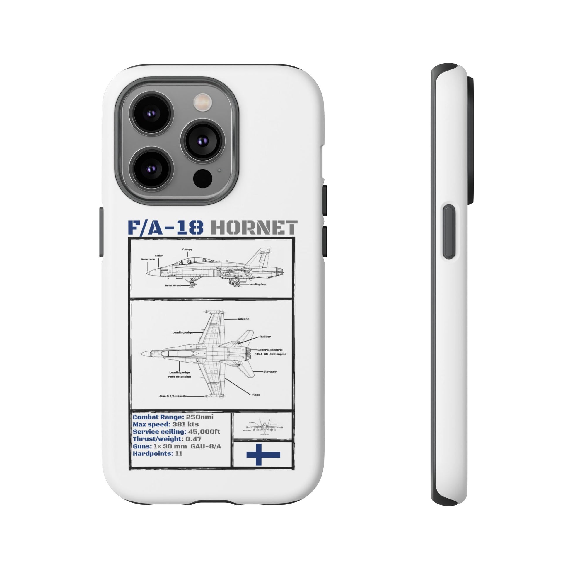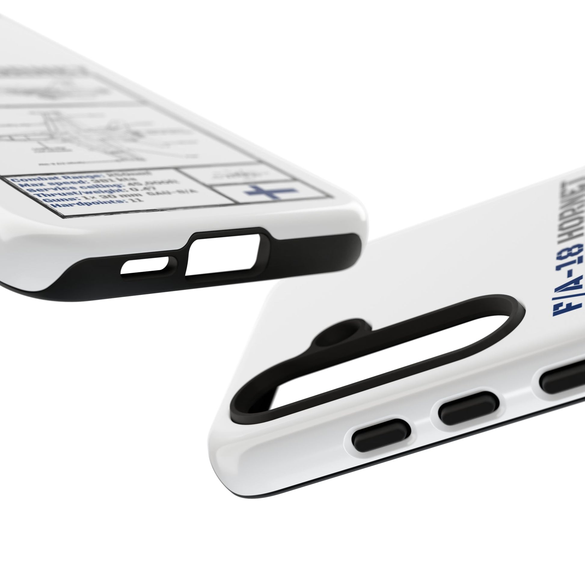 FAF Introducing the Blackbird Cases F/A-18 Schematic Edition—a sleek, high-performance phone case designed for aviation enthusiasts, by aviation enthusiasts. The detailed schematic of the iconic F/A-18 showcases its engineering brilliance, including key stats like top speed, G-limit, and max altitude.