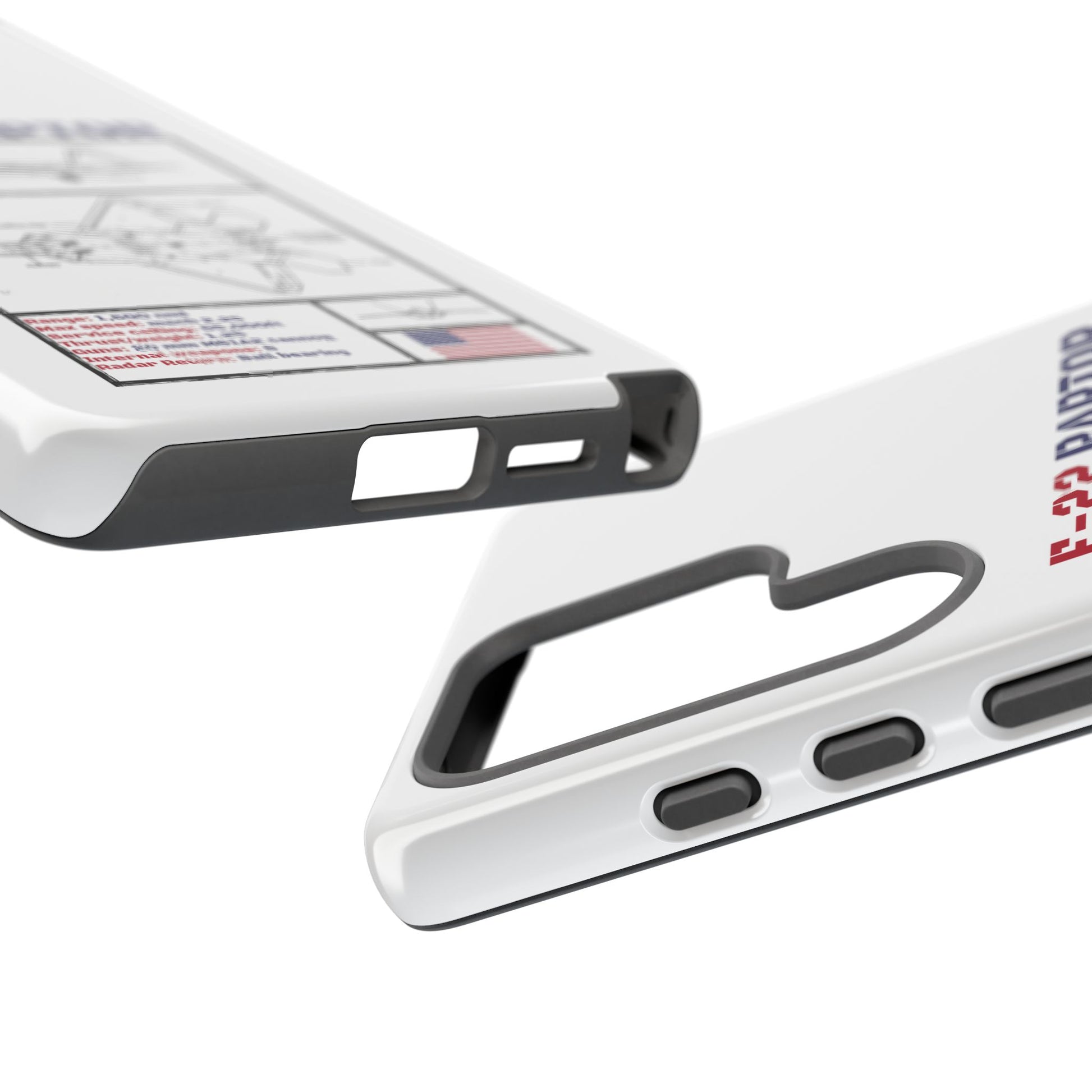 Introducing the Blackbird Cases F-22 Schematic Edition—a sleek, high-performance phone case designed for aviation enthusiasts, by aviation enthusiasts. The detailed schematic of the cutting-edge F-22 Raptor highlights its advanced engineering, including key stats like top speed, G-limit, and max altitude.