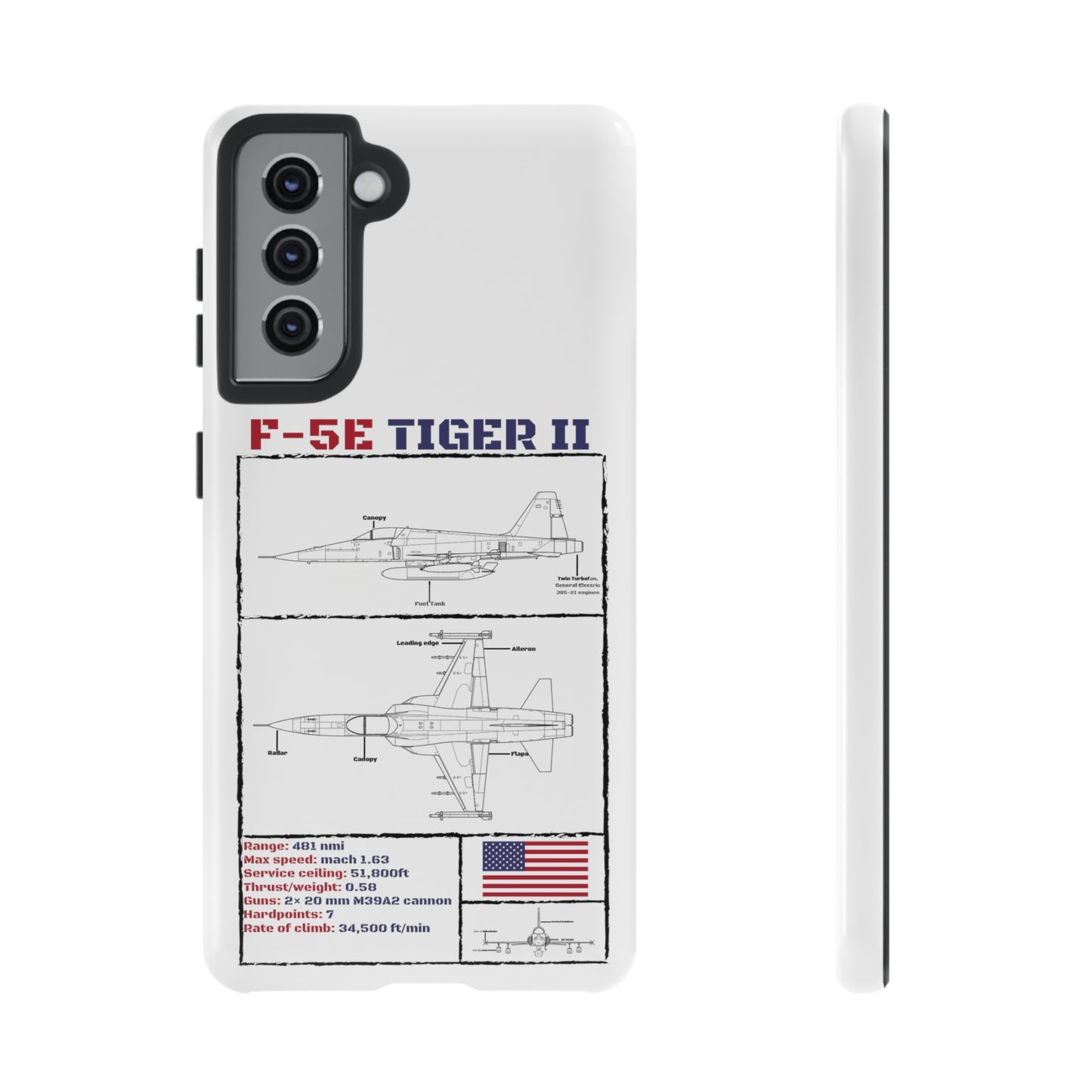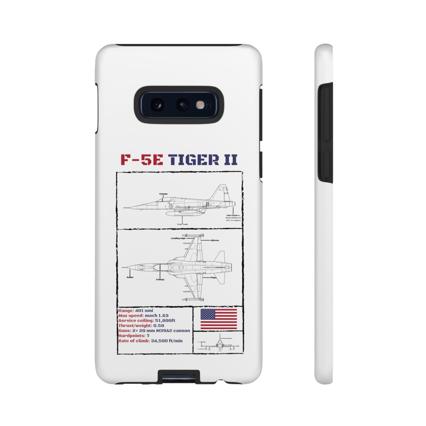 This incredibly durable, high-quality phone case is the perfect gift for any military aviation fanatic. With a unique blueprint design of the Legendary F-5E, complete with some of the aircraft's stats including top speed, armament and more this item is an essential for aviation enthusiasts alike. The case itself is made to withstand drops and the like, with double-layered protection to ensure your device's safety. Additionally it is fitted with an outer tough, polycarbonate shell, with us, your phone is in safe hands.